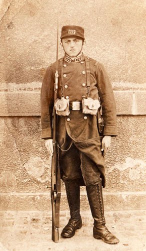 Incorporé à compter du 16 avril 1917 pour arriver au corps le 17 avril en tant que le soldat de deuxième classe ledit jour au 127eme régiment d’infanterie. Passé au 43e régiment d’infanterie le 12 octobre 1917. Nommé caporal le 15 janvier 1918. Passé au 201e régiment d’infanterie le 6 avril 1918. Prisonnier le 25 juillet 1918 à Plessier Huleu , En captivité en Allemagne . Avis officiel C. 9-856 du 1er oct 1918. Rapatrié le 20- 1-1919. et reversé au 43e RI le 28 fev 1919. Sergent le 12 – 0 6 – 1920. Certificat de bonne conduite accordé. Affecté au 1er régiment d’infanterie le 15 août 1921. Maintenu au 1er régiment d’infanterie de Cambrai Passe dans al réserve le 16 avril. Renvoyer dans ses foyers le 29 mai 1920 au titre de la Compagnie lilloise des moteurs de Lille Fives. Passe dans la réserve de l’armée 1er RI de Cambrai Réaffecté au 16e RT le 13-2-1940. Démobilisé le 19 juillet 1941.