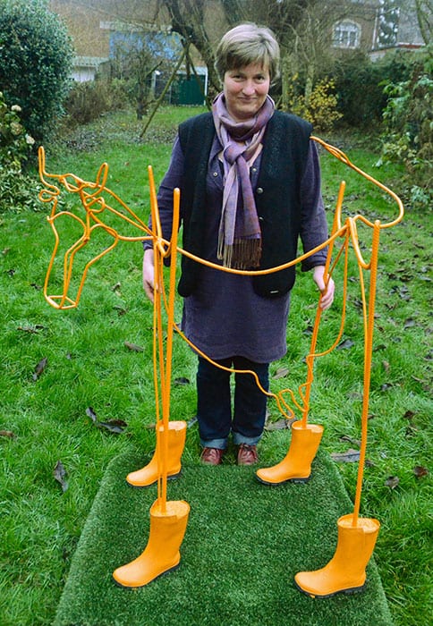 Illustration : Chris TELQUE et sa vache « Pierrette, le pis à lait » en fer à béton.
